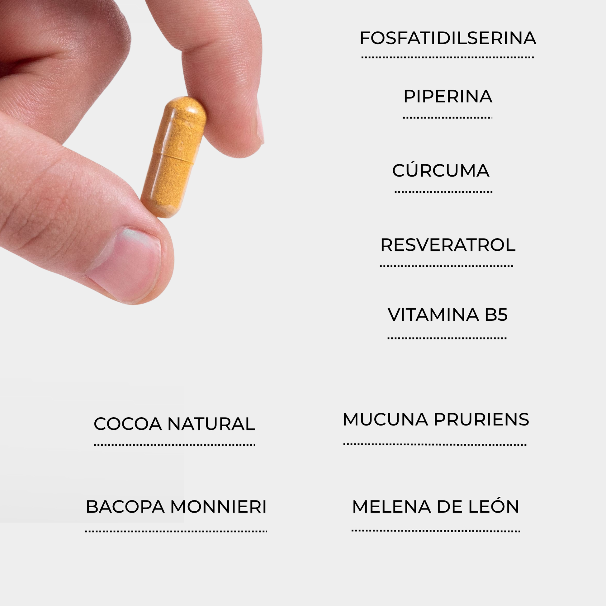 Suplemento alimenticio para mejorar la memoria & claridad mental, cuidando tu cerebro del estrés, ansiedad y la vejez